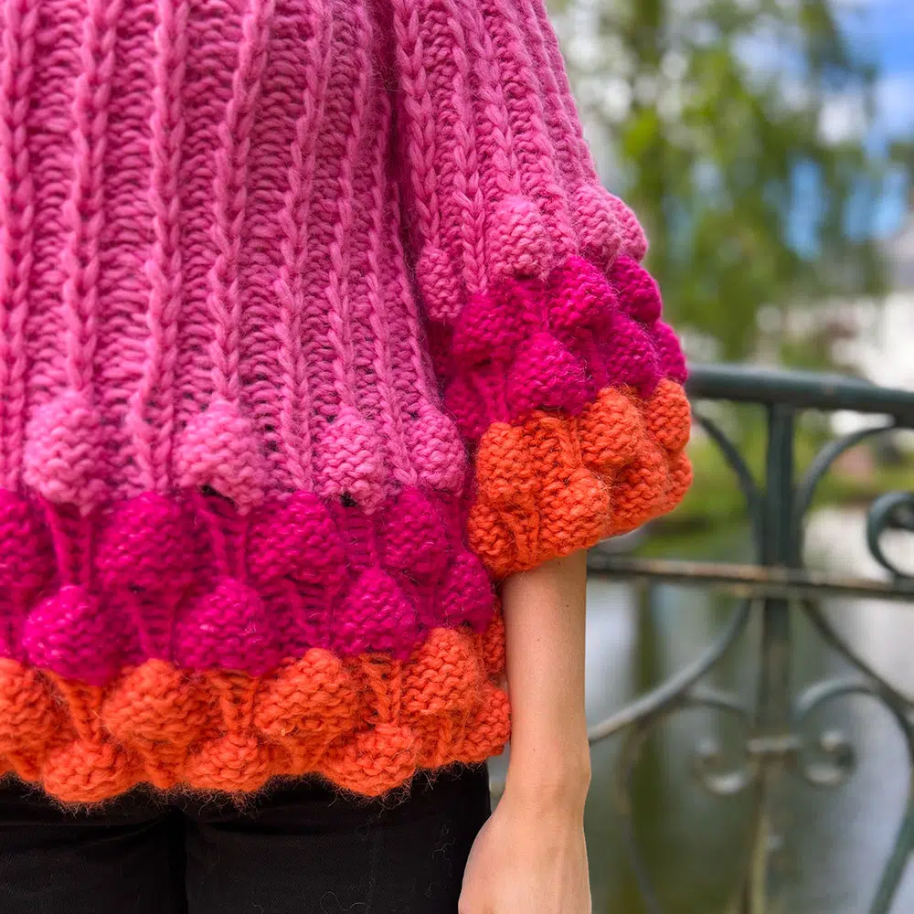 Alpaca Bris from Viking Garn (60% baby alpaca, 11% merino wool, 29% nylon). The entire sweater is knitted with double strands.