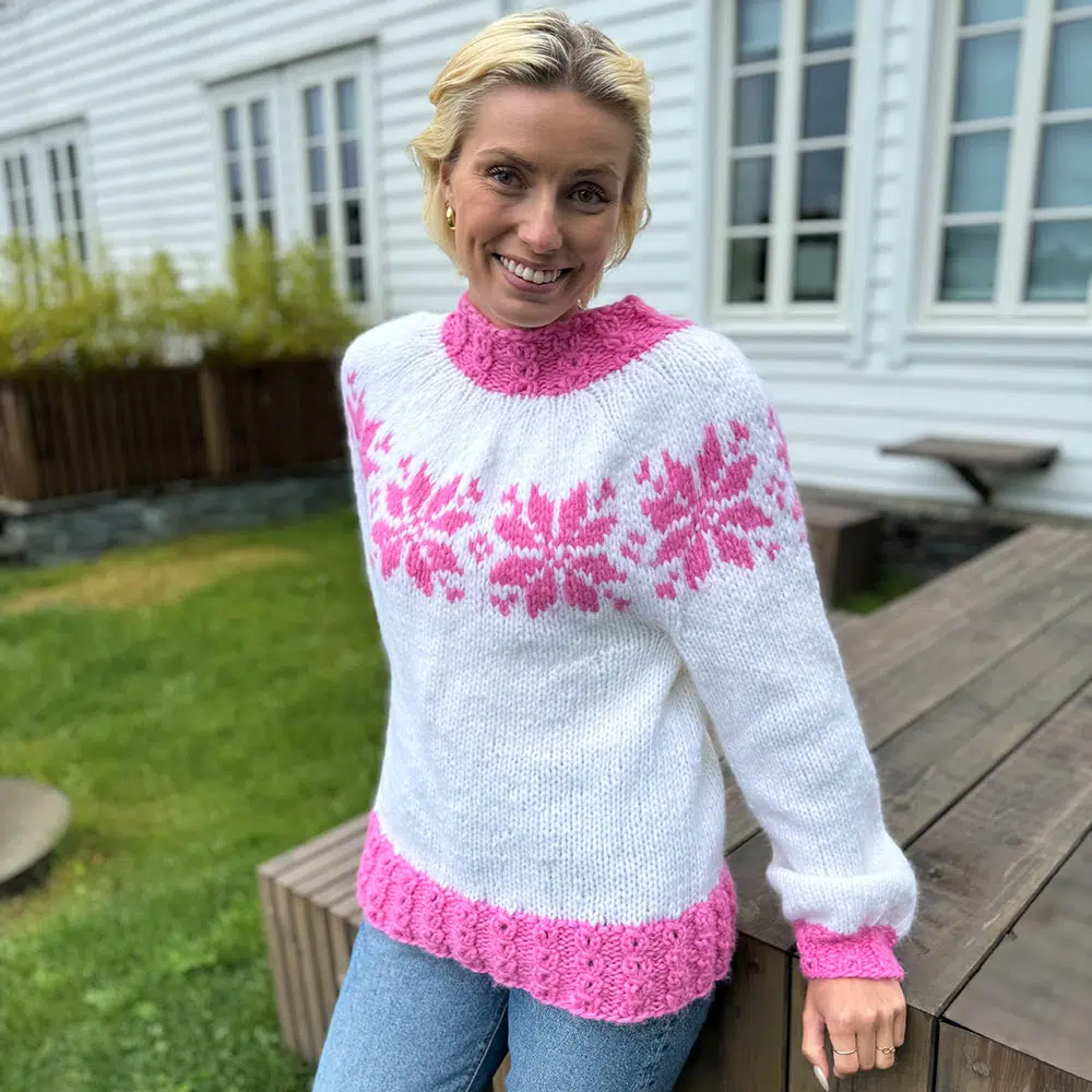 10 sts in stockinette stitch with two strands on 9 mm (US 13) needles = 10 cm / 4 in