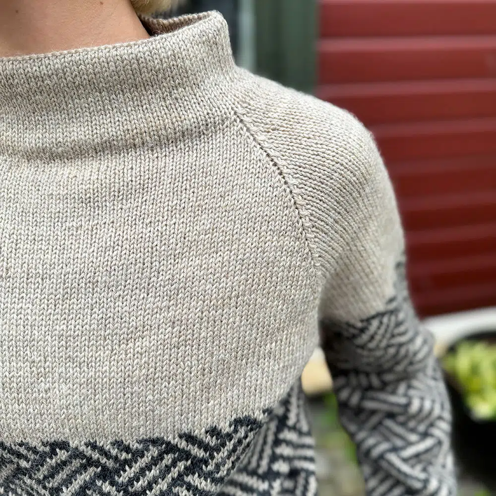 Knitted from bottom to top with raglan decreases