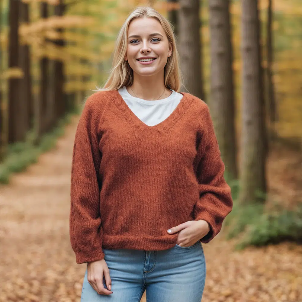 20 sts in stockinette with double strands on 4 mm (US 6) needles = 10 cm / 4 in