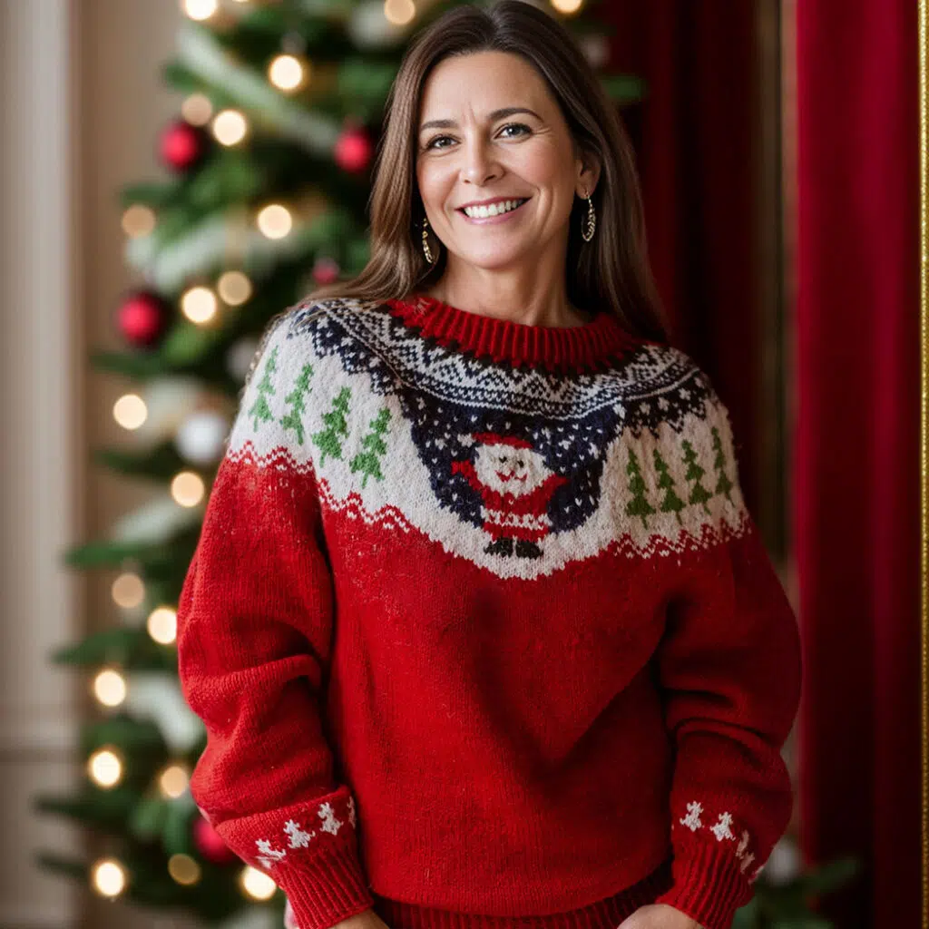 The Merry Christmas Santa Sweater is knitted from the bottom up with round yoke.